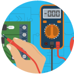 6 spécialistes de l’électronique et l’électrotechnique, régulièrement formés aux dernières innovations de notre secteur d’activité interviennent sur site ou en atelier.